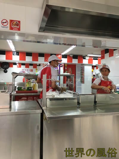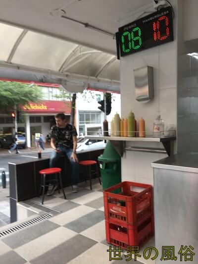 例えば、下記画像のようなハンバーガーショップでハンバーガーを買いイートインでベンチで座っていると、わらわらと物乞いが集まって来て食べかけのハンバーガーをくれとか金を恵んでくれなどと言ってきます。私はスペイン語は数字や挨拶程度しかわからないので、無視しか方法はないのですが、メデジン現地人の青年が物乞いに絡まれてしまいました。