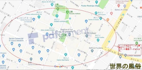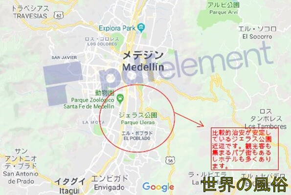 今回は若者用のパブ密集地区であり治安が安定しているParque Lleras(ジェラス公園)周辺に泊まりました。ジェラス公園も深夜になると質の良い、立ちんぼが出現します。