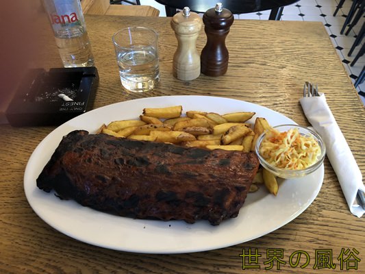 ザグレブで下記の焦げたパサついた牛肉は120クーナ(2400円)、水は10クーナ(200円)程度でした。