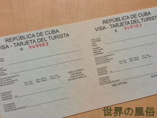 キューバ入国に際しまして、ツーリストカードと言われるビザに似て非なるもの小さい紙が必要です。
