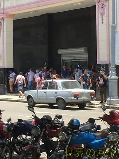 写真のようにカードの販売所には現地人がオープンからクローズまでびっしりと詰め掛け、並ぶのは1時間以上かかるような混雑ぷりです。そうです、キューバはどこでも並びます。これに並んで買うとなるとうんざりします。なにしに旅行にきたのかわからなくなるレベルです。