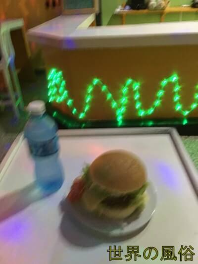 *ローカル食堂のハンバーガー。水をいれて2CUC=50CUP=200円ぐらいだった記憶です。