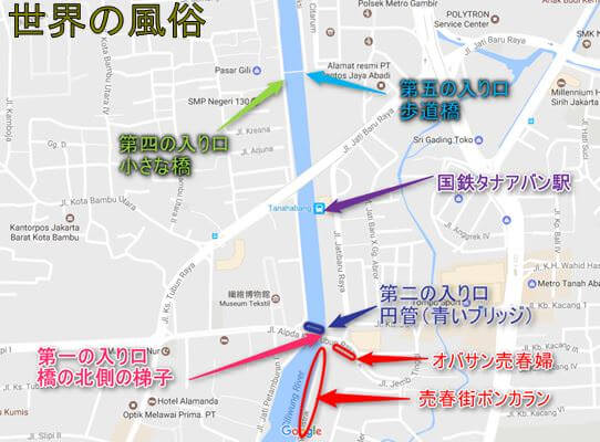 最後に、タナアバン駅周辺のMAPと売春街ボンカランの位置関係、秘密の入り口を含めたMAPを簡単ですが、掲載します。