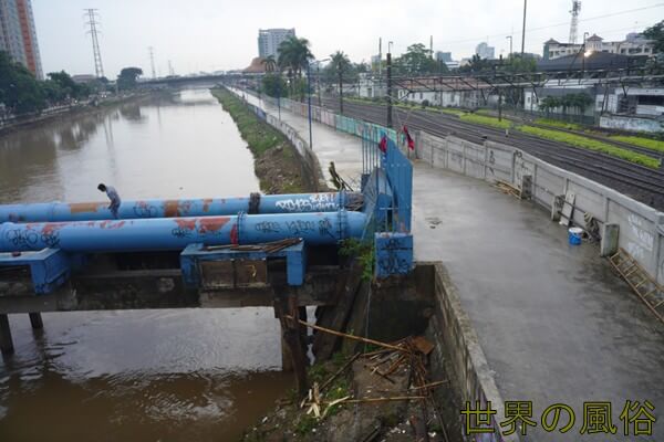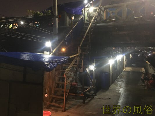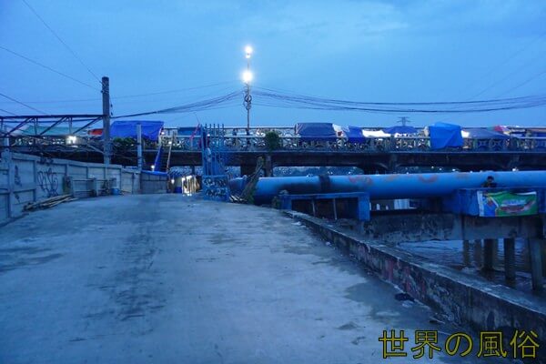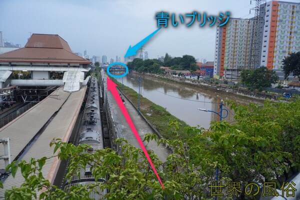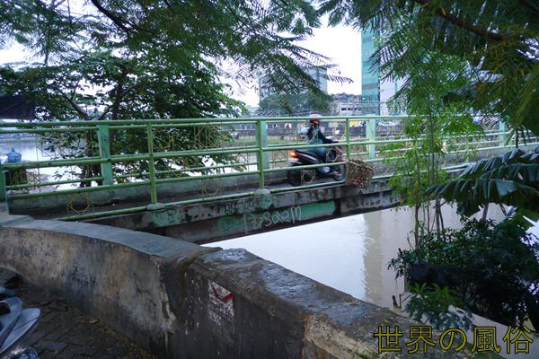 この場所は上の地図でいうところの「売春街ボンカラン」の真上にある白い道路で表示されている川を渡る橋になります。