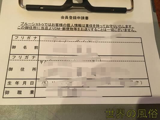 女の子を待つ間は、会員になるための申請書を書いておりました。