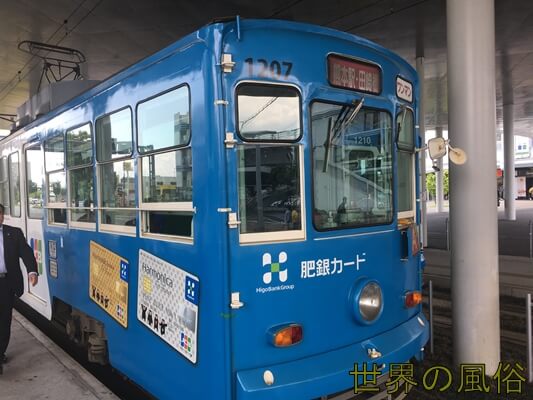 意外にもPASMOに対応しており、古い乗り物ながら、ピッと乗車口のところでやって、さっと電車に乗ることができます。10分くらい乗って、辛島町というところで降りました。