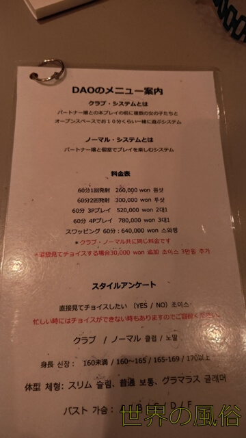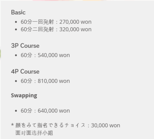DAO按摩のweb上でのメニューだと、ベーシックコース、3Pコース ,4Pコ-ス、スワッピングコースとなっています。