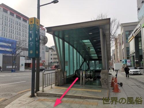 最寄り駅は江南駅ではなく、地下鉄7号線鶴洞駅(ハクトン駅)です。10番出口からまっすぐ数分歩けば到着できますが、わかりやすいようにMAPに道のりを示したのでチェックしてみてください。