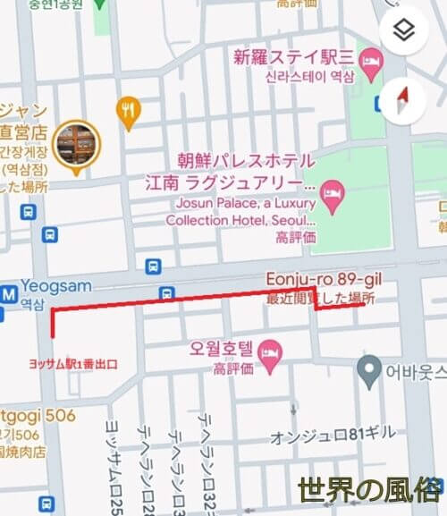 ID Anmaの場所について。これが意外に分かりにくいです。最寄り駅は江南のヨッサム駅ですが、駅から歩いて10分ほどかかります。韓国でも高級地区のため、やたらピンクチラシが落ちている以外は、治安はいいです。