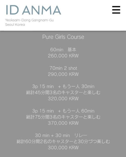 韓国按摩 ID ANMAの料金