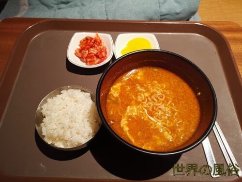 盲人按摩が終わると、ラーメンとキムチとライスのサービスが待っていました。
