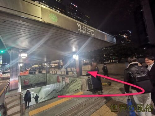 ID按摩は江南にあるのですが、最寄り駅は江南駅ではなく、地下鉄2号線「駅三駅」(ヨッサム駅)です。そこから数分歩けば到着できますが、わかりやすいようにMAPに道のりを示したのでチェックしてみてください。