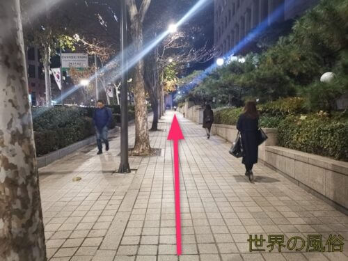 1番出口から出たら、即Uターンします。Uターンしたら東に向かいます。