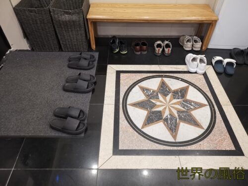 ドアを開けて中に入ります。靴を脱いで中へ入り、サンダルに履きかえます。靴は係の人が靴箱の中に入れてくれました。