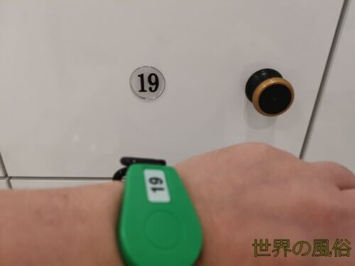 渡されたロッカーキーを使ってロッカーに荷物を入れます。他の按摩はキーを回して開けますが、ID按摩はキーを黒いノブに当てると自動で開くという、ナウなヤングにバカ受けしそうなはいからなシステムでした。