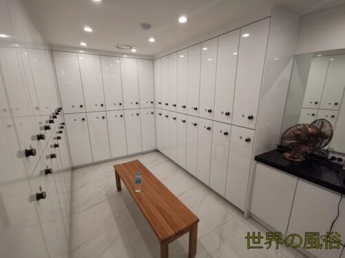 ロッカールームは真っ白で清潔感があります。MAN君が半年前に行ったときは茶色のロッカーだったのに、新品で綺麗な感じがします。