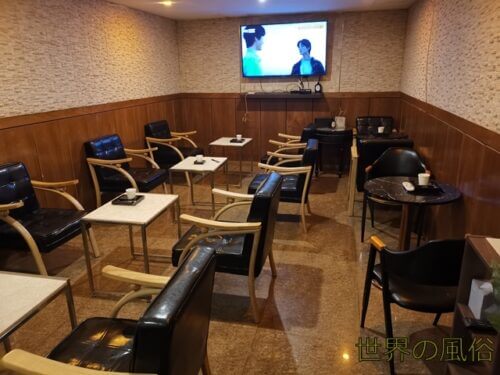 すると、ウェイティングルーム的な部屋に案内されます。ソープの待合室みたいです。ここで何を言っているのかよくわからないTVを5分くらい見ていたら、上司と部下らしき日本人がやってきました。駐在員はやっぱりエッチな遊びしてるんですねw