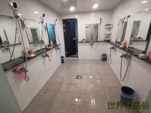 ロッカールームの隣の部屋には共同シャワールームがあります。ここで体を清めます。おちんちんペロペロしてもらうんだから、紳士のおっさんはカリ首からアリの門渡りまで綺麗に石鹸で洗いました。イテテ