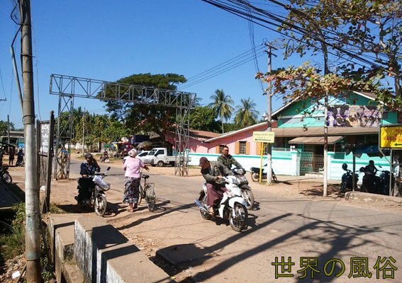 はじめにバゴー風俗MAPの①に向かいます。写真の緑の服のお兄ちゃんがバイタクです。