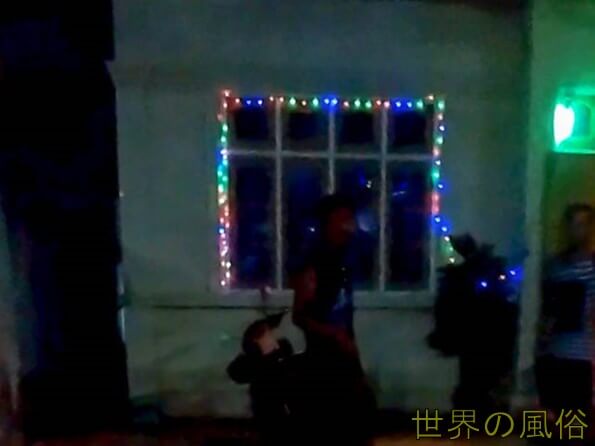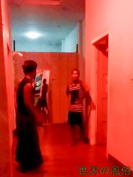 どちらの店舗も少しばかし立派な民家ですが、玄関に堂々とピンクのランプがついており、周りが電飾で飾られています。以前、パコックーで見たバラックの置屋よりも派手で目立っています。早速、1店舗目に入ってみます。