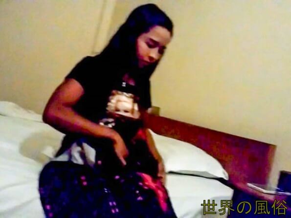 部屋に入り、ようやく嬢の全容が確認できました。嬢は、21歳のネピドー出身の子で、普段は農業をしているということでしたが、農業をしているには似合わないハイヒールと厚化粧です。また、足首に小さな花のタトゥがあり、悪い予感がします。