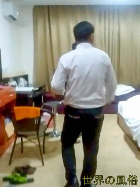 中は普通の客室で、客室の一角でやっているようです。中にはベトナム人の男が二人おり、黒服に言われて携帯で女の子を呼び出しています。