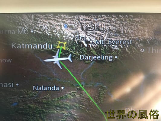 カトマンズ周辺で1時間くらいウロウロしております。カトマンズの空港「トリブバン国際空港」は高い山に囲まれているため、離着陸が難しい空港なのです。そのため、定刻通り飛行機が到着しないことも多々あるのだそうです。噂どおりでしたねw
