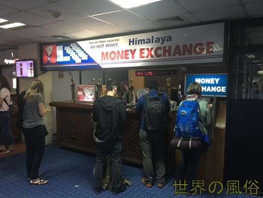 空港での両替レートは日本円で0.919。カトマンズ市内について分かったのですが、市内の民間両替所のレートはほぼ一緒ですが、空港での両替はコミッションが取られる分損をします。10000円を両替すると計算上9190ルピーのはずですがコミッションが200ルピーとられるので、実際は8980ルピーとなります。そのため、空港で両替する人は初日分の1万円だけ両替しておけばよいでしょう。