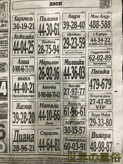ロシアでは新聞にコールガールの電話番号が書いてあるんです。キルギスでも同じでしたね。