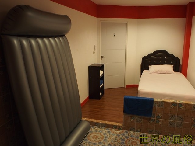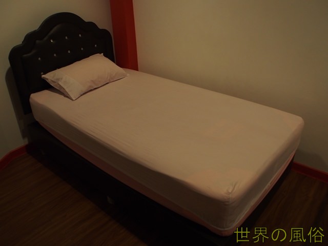 ノーマルルームの部屋の大きさは見ての通り、ベッドとシャワー以外のスペースは殆どありません。他の日系エロマッサージ屋と同等の平均的な大きさと言えます。